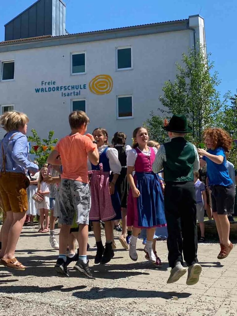 Mit diesen Worten eröffnete Eva Zebhauser, Klassenlehrerin und Kunstlehrerin an der Freien Waldorfschule Isartal, das Maifest. Auf dem gesamten Schulgelände wurde bei strahlendem Sonnenschein und sommerlichen Temperaturen gefeiert, gebastelt, gesungen und getanzt.