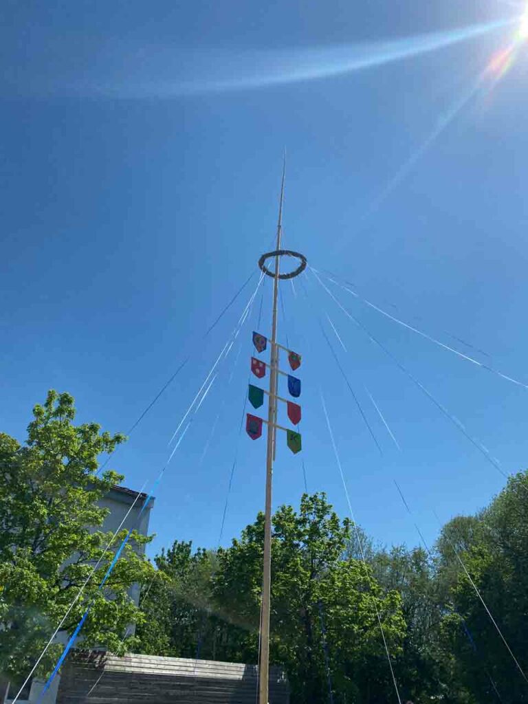 Nach all der Aufregung wurde er am Maifest endlich betanzt und bestaunt und bereichert nun einen der Pausenhöfe.